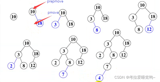 prepmove->RChild = newNode;//当前节点的数据<要插入数据的键 数据要往右边插