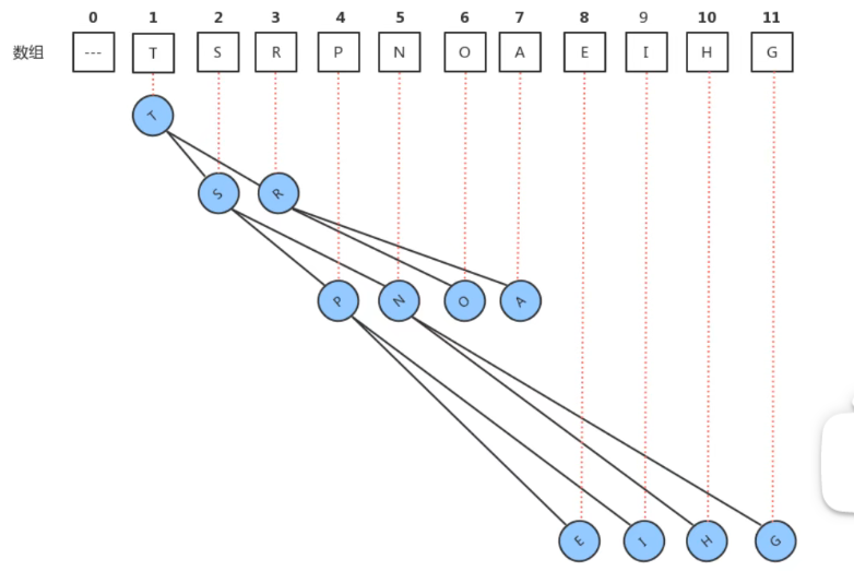 特点: 最大的元素放在数组的索引1处,每个结点的数据总是大于等于它的两个子结点的数据。(因为用到的底层数据结构是堆,所以处理起来很像在处理堆)