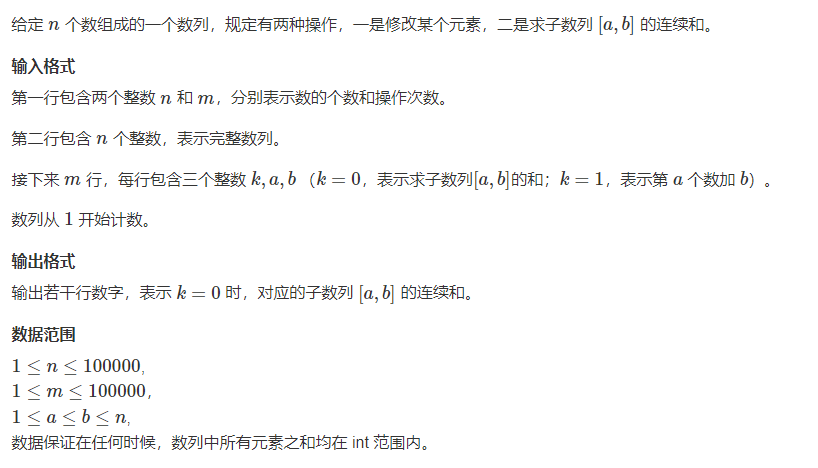 树状数组解决的两个问题: 1. 单点查询: 在某个位置上加上一个树 2. 区间更新:求某一个区间前缀和