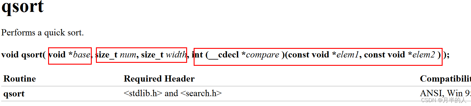 我们再看看qsort排序,base是用的void*无类型的。这样,我们就知道,qsort肯定是解决了字符串排序的方法。