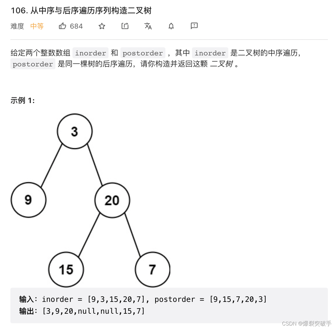 TreeNode root = new TreeNode(postorder[postIndex]);