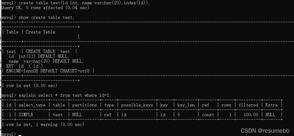 ?普通索引采用INDEX关键字指定字段,可以采用explain查看索引是否被引用,其他索引加修饰关键字UNIQUE等即可。