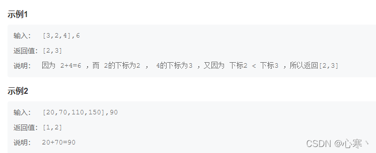 (注:返回的数组下标从1开始算起,保证target一定可以由数组里面2个数字相加得到)