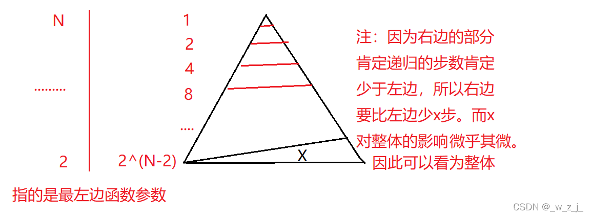 所以根据等比数列求和公式可以得出和为 2^(N-1) - 1。则时间复杂度为O(N*N)。