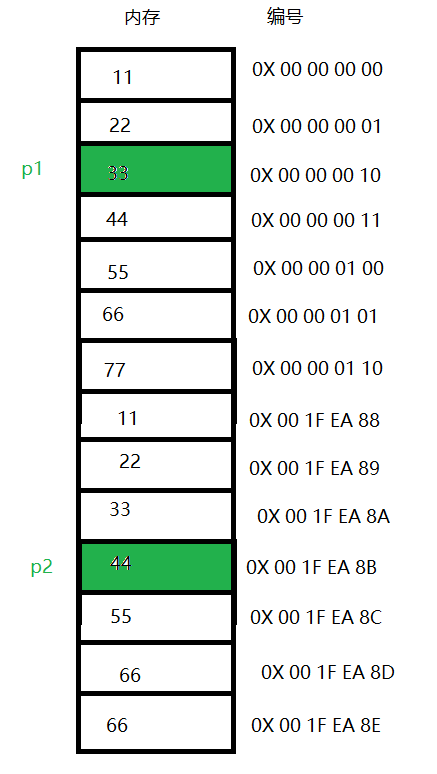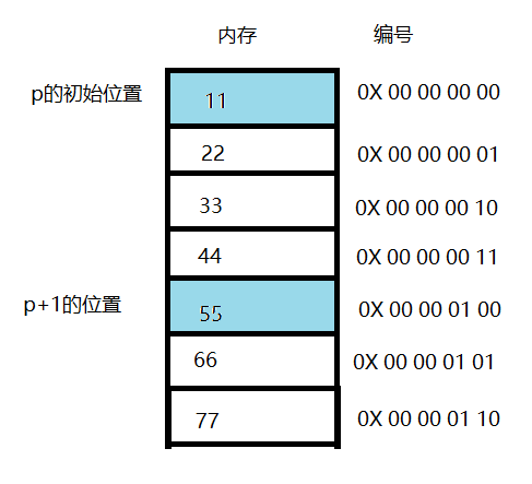 - 🌴int*类型的指针,对其+1跳过4个字节。