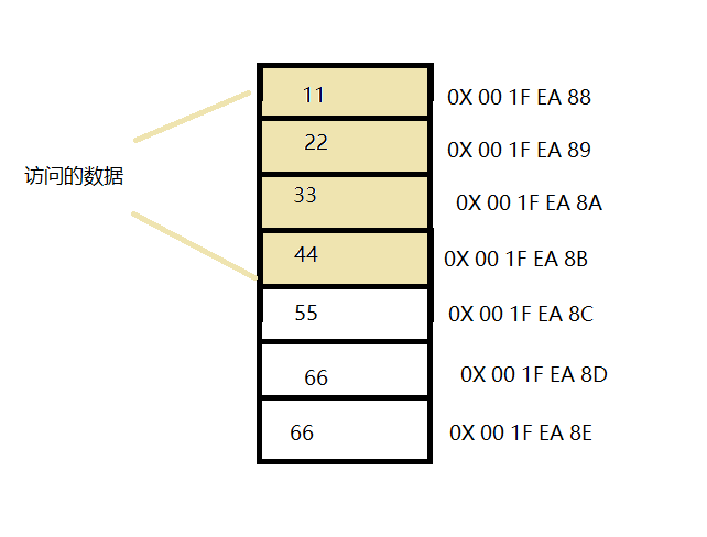 以int*为例如果指针的值是0x 00 1F EA 88,那么解引用访问的就是从该地址处向高地址处访问4个字节。