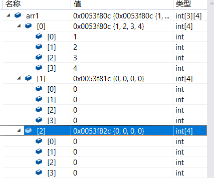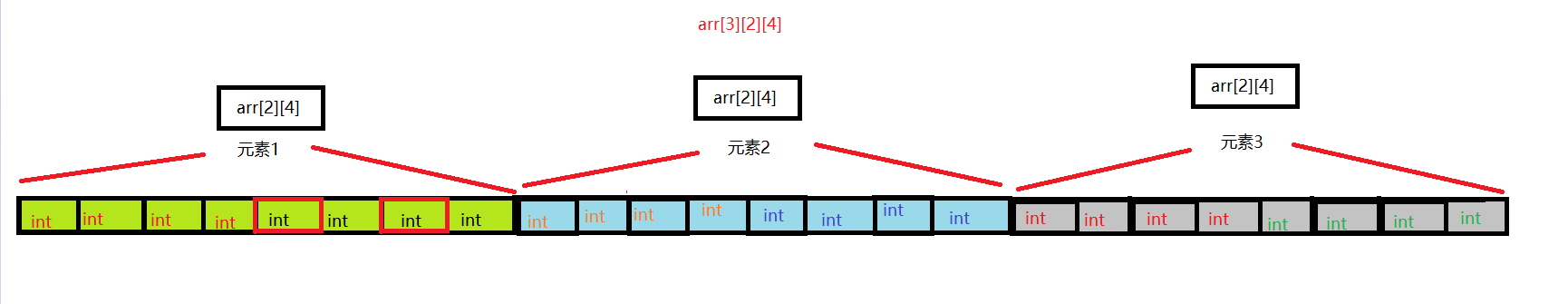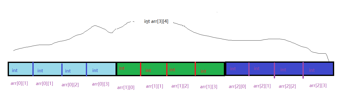 二维数组本质是线性的一维数组,如int arr[3][4];相当于int arr[3],它的每个元素是一个int arr[4]的数组