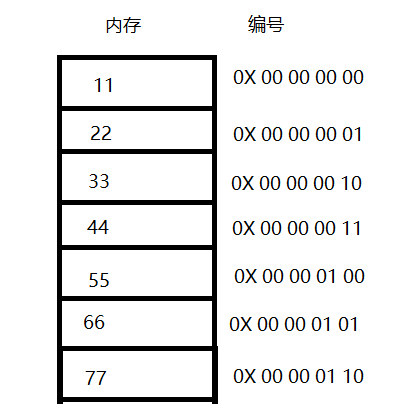 ?内存单元大小为一个字节,这里的11 22 33 44 55 66 77均为16进制数。(一位16进制数等于4位2进制数)