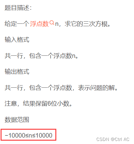 浮点数二分是一种不精确的二分,因为受浮点数小数位数限制,我们只能根据题目意思,求个大概的值。