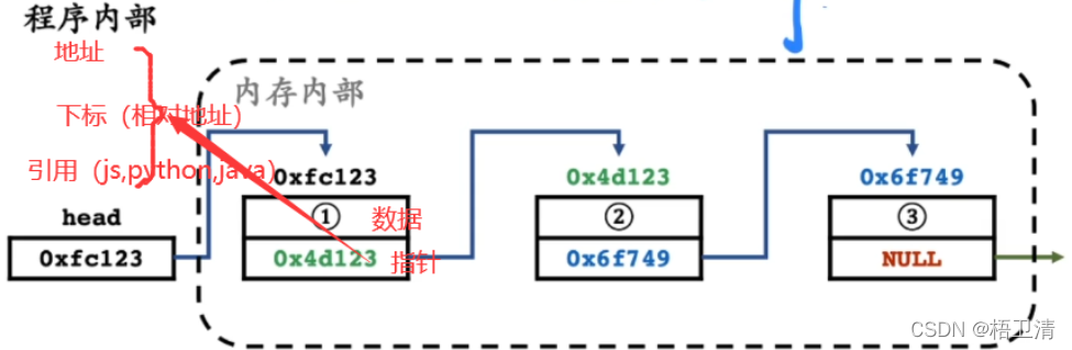 2.链表中的每个节点,通过指针域的值,形成一个线性结构;
