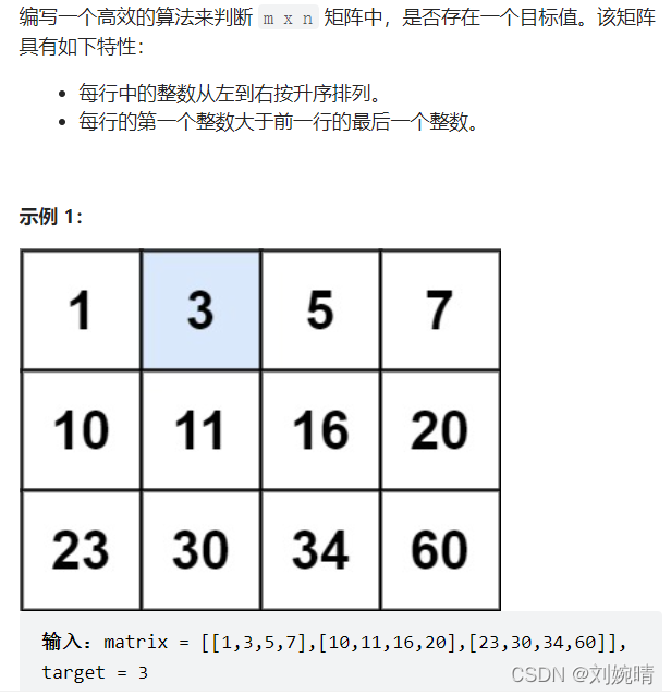 ?题目来源:74. 搜索二维矩阵 - 力扣(LeetCode) (leetcode-cn.com)