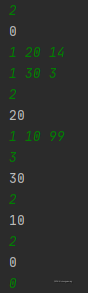 输出:对于代码2或3的请求,都单行输出所服务的客户标识。如果请求时等待列表为空,则输出0。