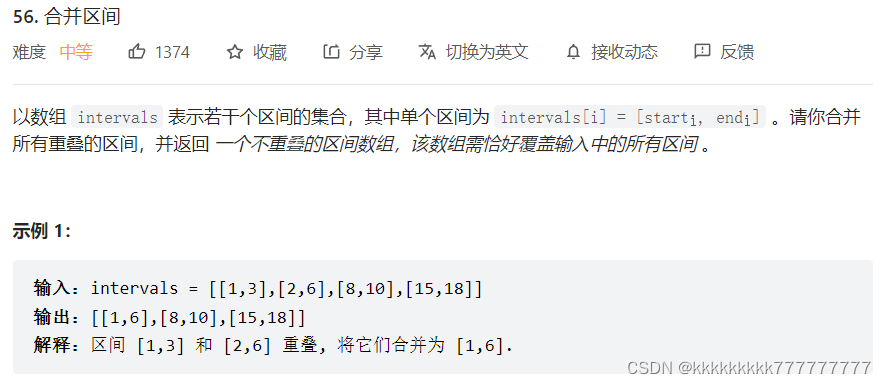 (2)判断两个区间能否合并:前一区间的 end 大于后一区间的 start(前提是各区间已经完成(1)中的排序)