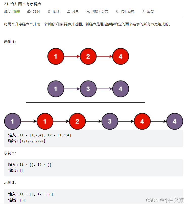 21. 合并两个有序链表 - 力扣(LeetCode) (leetcode-cn.com)