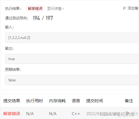 一开始想,通过中序遍历得到所有节点的值,中序遍历后的值是对称的就行,比如,示例1的中序遍历结果是3 2 4 1 4 2 3,将结果保存到数组当中,再判断数组中的值是否对称。