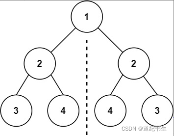 输入:root = [1,2,2,3,4,4,3]