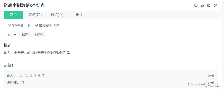 ?这道题如果用常规的方法就是先遍历计算出n个结点,然后从头找到正数的第(n-k)个结点,再返回第n-k个结点,是比较麻烦的。但如果用双指针的方法会简单许多。