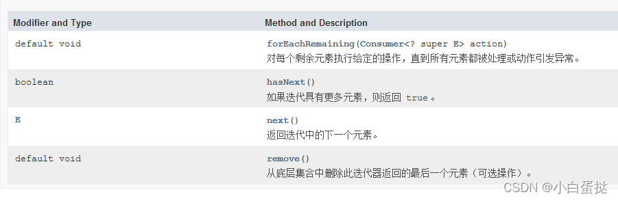 ts.iterator()就会返回一个Iterator<String>类型的迭代器。