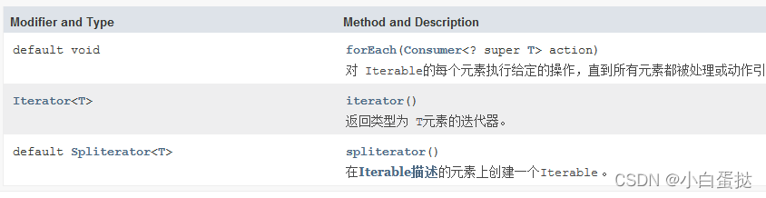 Collection继承了Iterable接口,这表明所有集合元素都是可迭代的,可遍历的。就可以实现加强for循环。这个接口里面有一个iterator()方法,返回一个类型为T的迭代器。