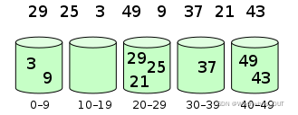- 使用的映射函数能够将输入的 N 个数据均匀的分配到 K 个桶中