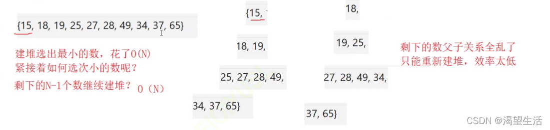 现在我们给出一个数组,逻辑上看做一颗完全二叉树。我们通过从根节点开始的向下调整算法可以把它调整成一个小堆。向下调整算法有一个前提:左右子树必须是一个堆,才能调整。