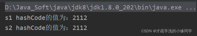 System.out.println("s2 hashCode的值为:" +s2.hashCode());