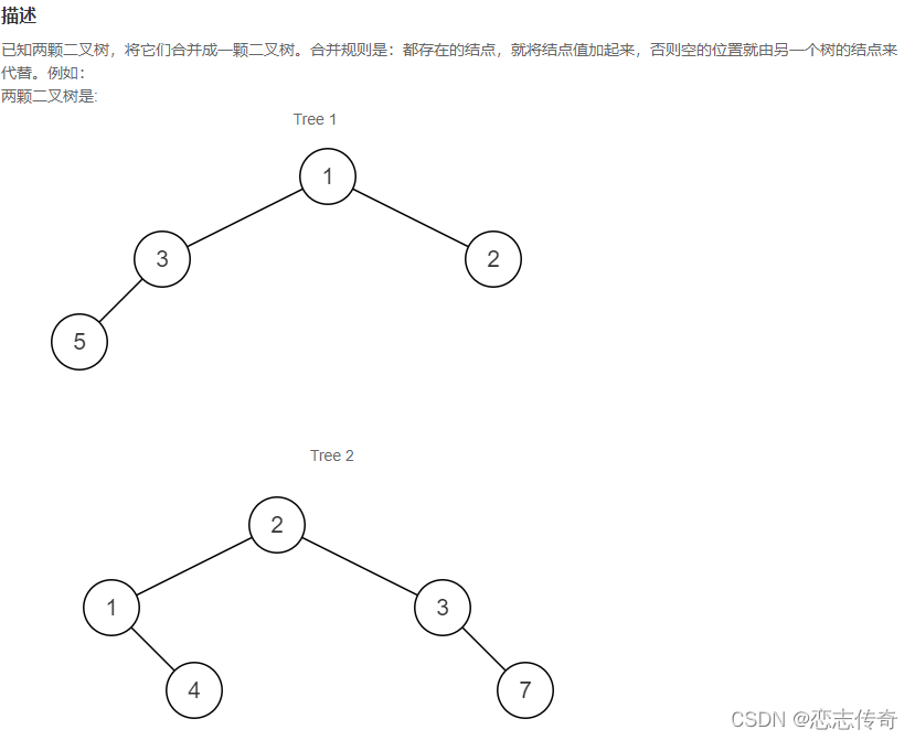 首先判断两个树的根节点,是否为空,有一个为空则直接返回不为空的。其次,选择一颗树的根节点作为最终的树,最后依次向下递归以及判断。具体的看代码,很简单哈!
