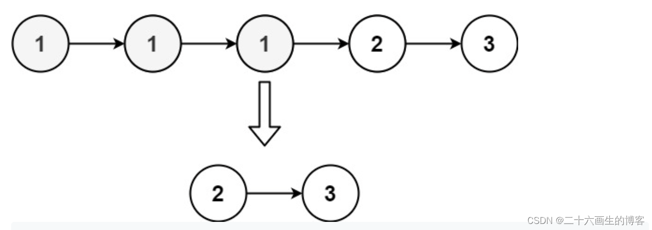 pre.next = head.next;//只是指向后面第一个不同的值,并没有修改pre的指针。还需要继续判断后续是否重复