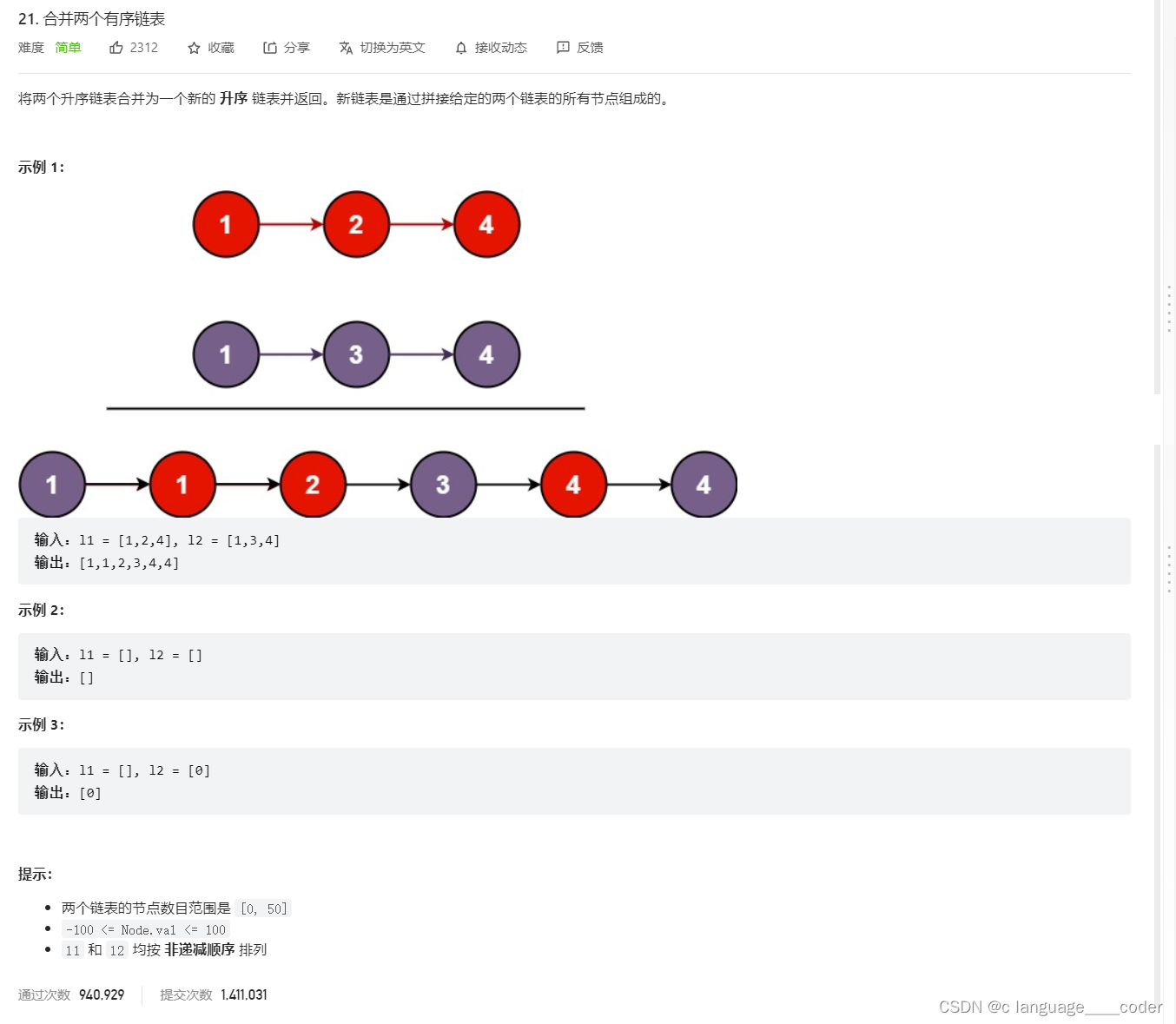 struct ListNode* mergeTwoLists(struct ListNode* list1, struct ListNode* list2){