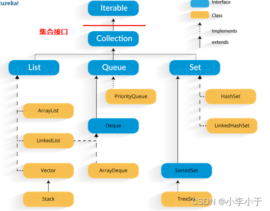 - 接口:Iterable、Iterator、Collection、List、Queue、Set、Map;