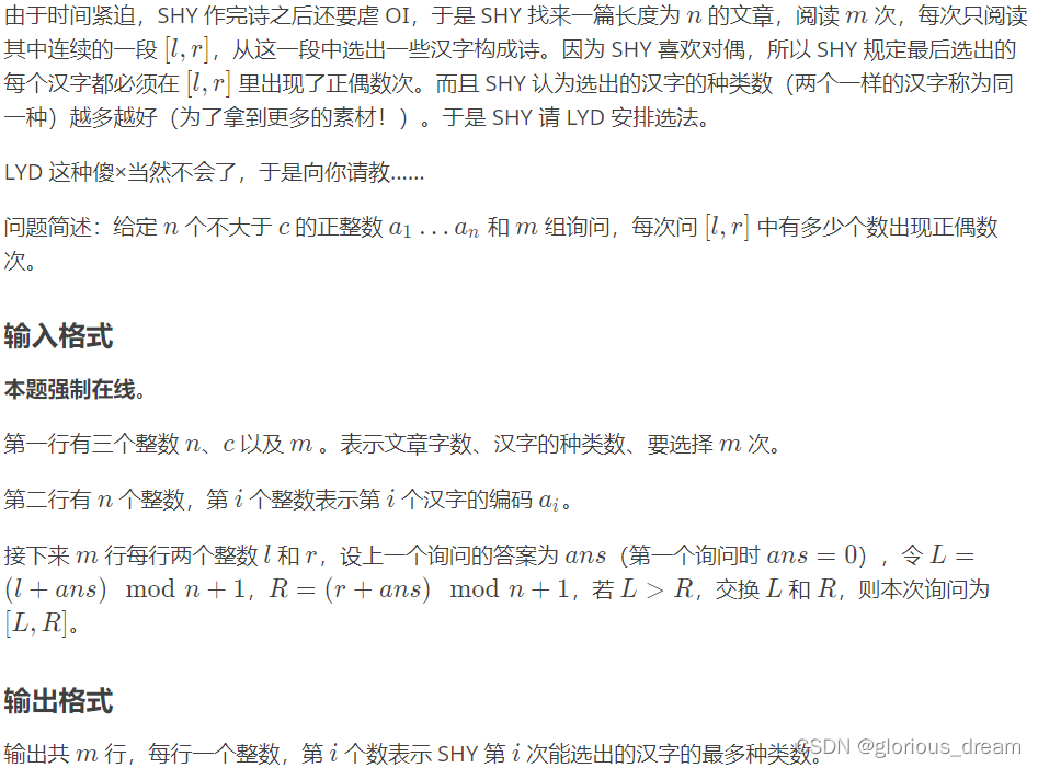 首先,如果忽略本题强制在线的话,可以用莫队来做。