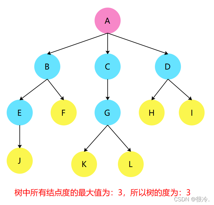 ?树的度:一棵树中,所有结点度的最大值称为树的度