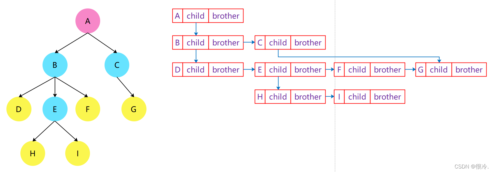 - 树结构相对线性表就比较复杂了,要存储表示起来就比较麻烦了,实际中树有很多种表示方式,如:双亲表示法,孩子表示法、孩子双亲表示法、孩子兄弟表示法等等。