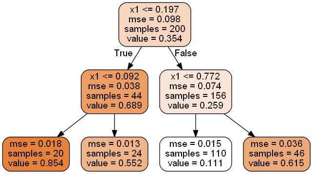 tree_reg2 = DecisionTreeRegressor(random_state=42, min_samples_leaf=10)