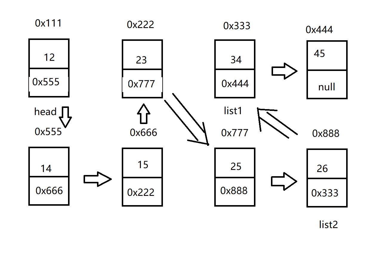 public ListNode mergeTwoLists(ListNode list1, ListNode list2) {