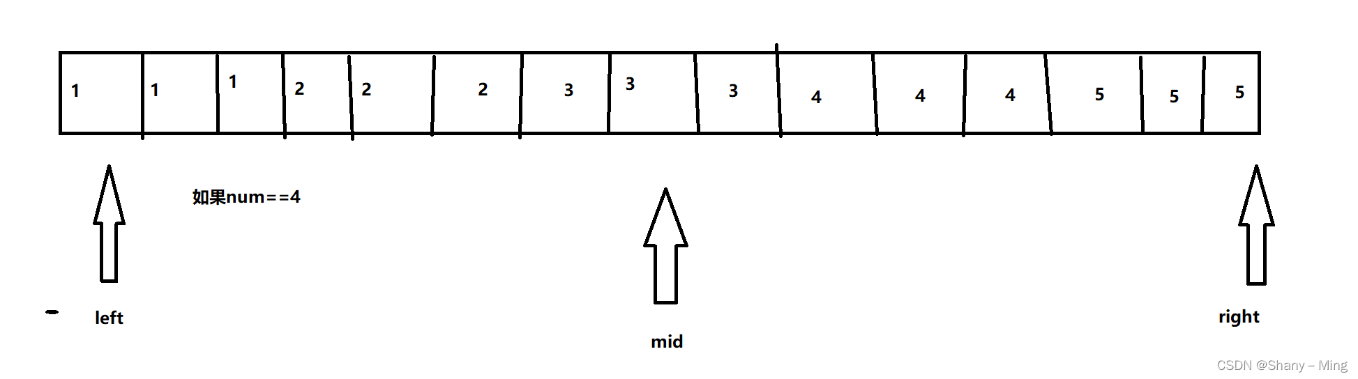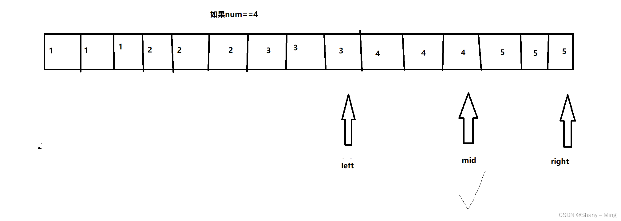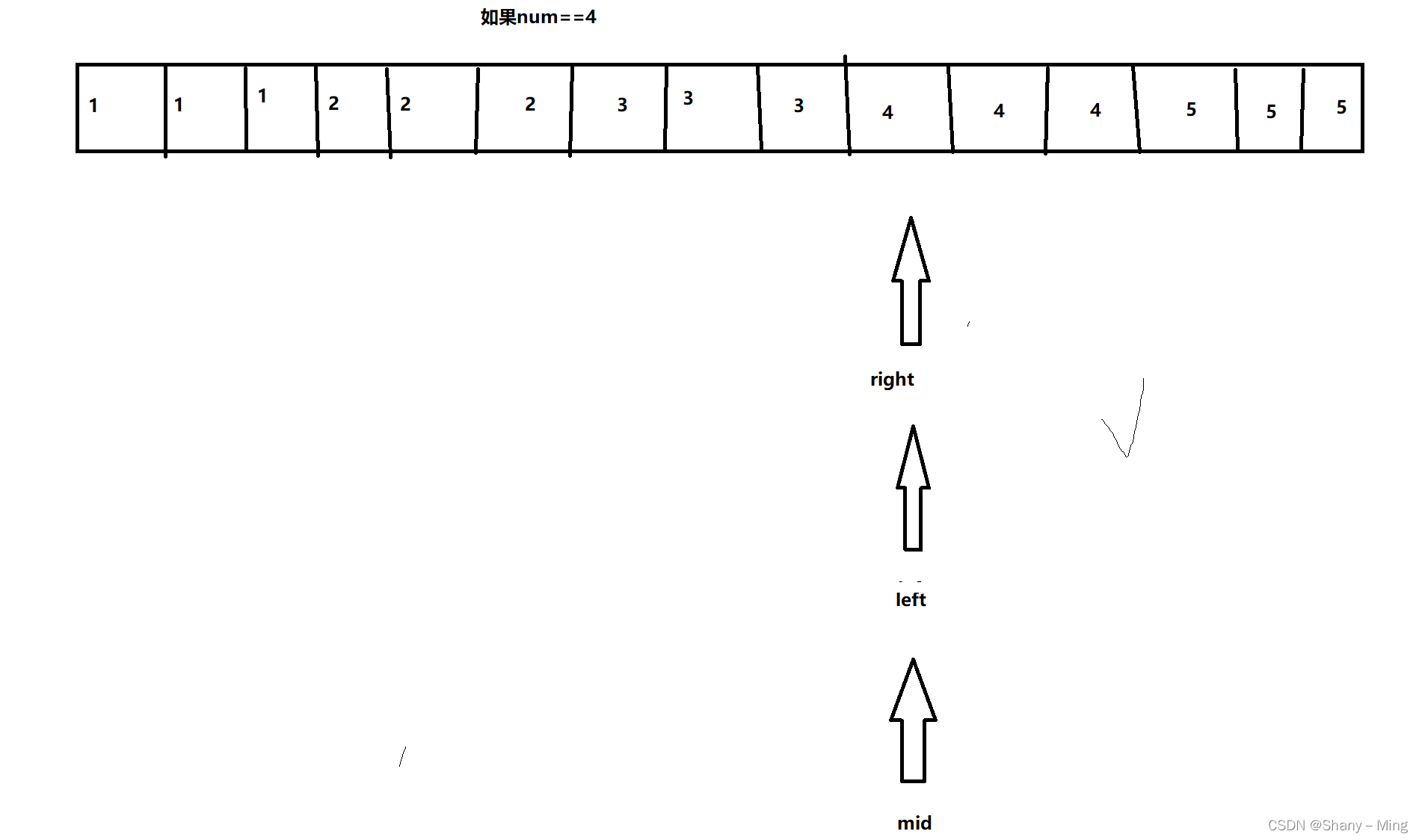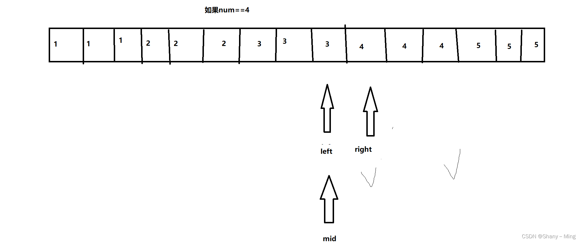假如num=3,大于等于最左侧的下标为6,小于等于最右侧的下标为8,可以二分直到二分结束