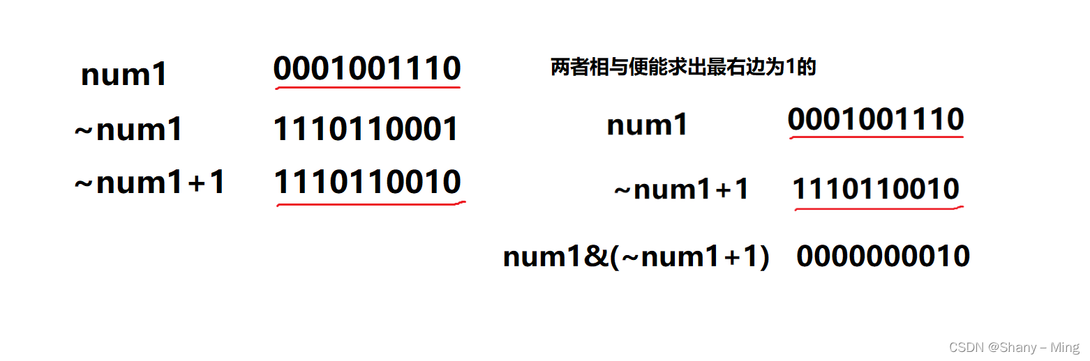 此时得到的是两个出现一次元素的异或且num肯定大于0,接下来这行便有意思了
