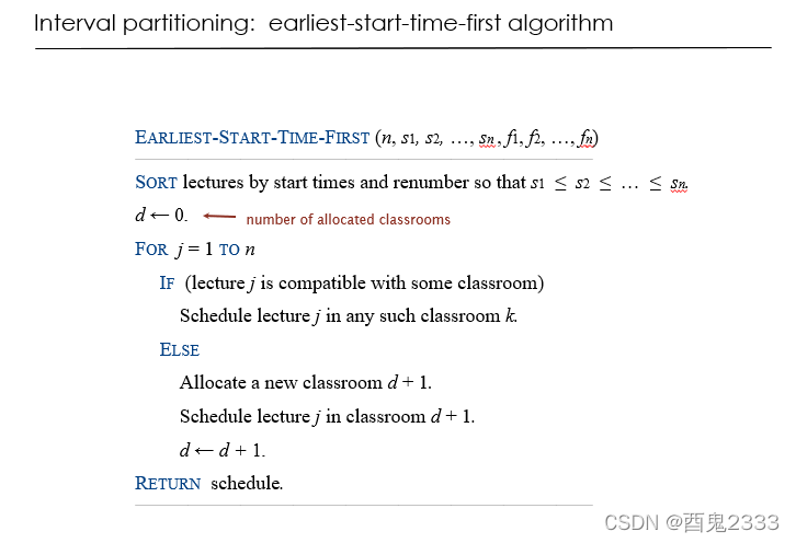 朴素的想法是求解出所有compatible的方案,寻找区间选取个数最多的方案。这里所有compatible的方案和coin changing问题中所有价值小于等于V的表达方式是类似的,所有compatible的方案可以按照选取区间的个数划分成若干个阶段,第i个阶段包含选取i个区间的compatible的方案,可以确定的是第i+1个阶段的某个方案一定是由第i个阶段的某个方案扩展得到的。