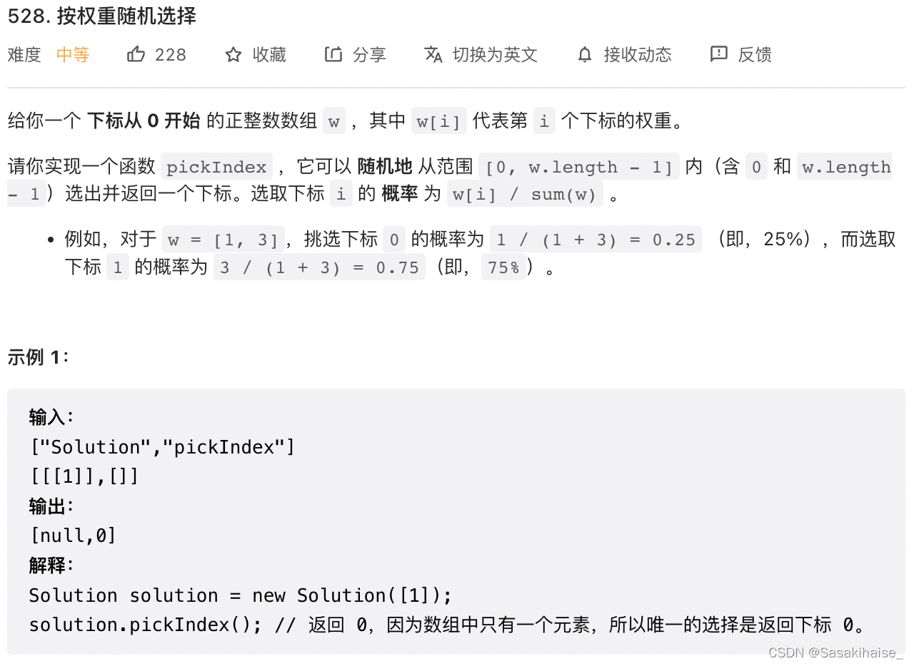 力扣 https://leetcode-cn.com/problems/random-pick-with-weight/