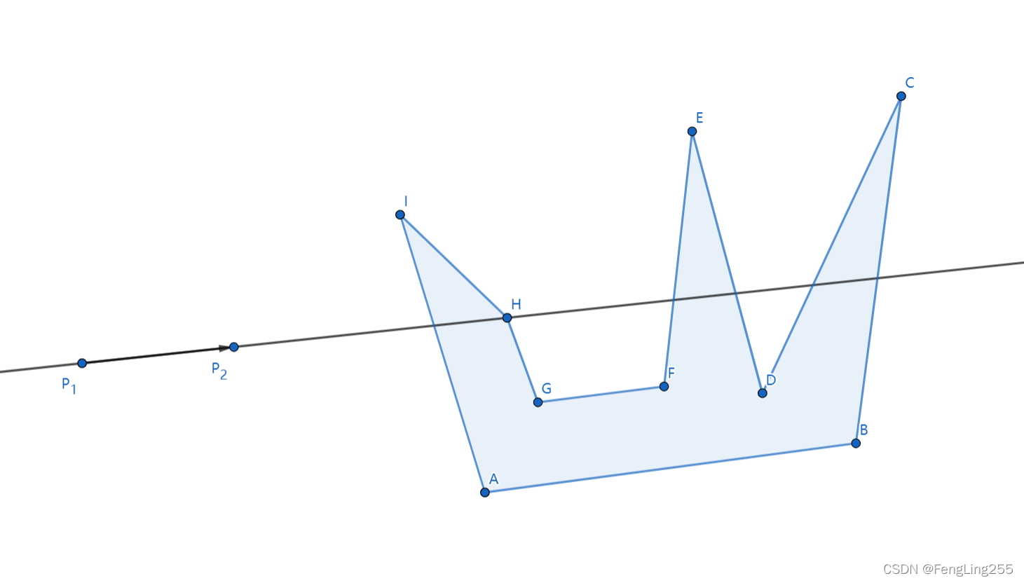 开始逆时针遍历多边形的所有边,可以发现所有合法部分都是由多边形从右侧跨越到左侧的边和从左侧跨越到右侧的边夹成的。下图中,