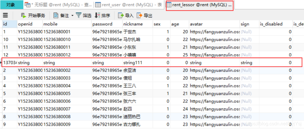 INSERT INTO `rent_lessor` VALUES ('5','Y15236380005','15236380005','96e79218965eb72c92a549dd5a330112','张三丰',1,21,'https://fangyuanzulin.oss-cn-beijing.aliyuncs.com/2021/03/05/31f4e1be45744e51b75675201758f59edefault_avatar.jpg',NULL,0,0,'2021-01-25 11:23:37','2021-01-25 11:23:44');