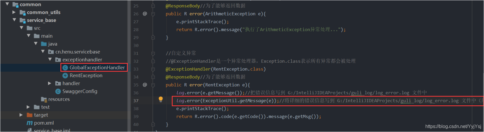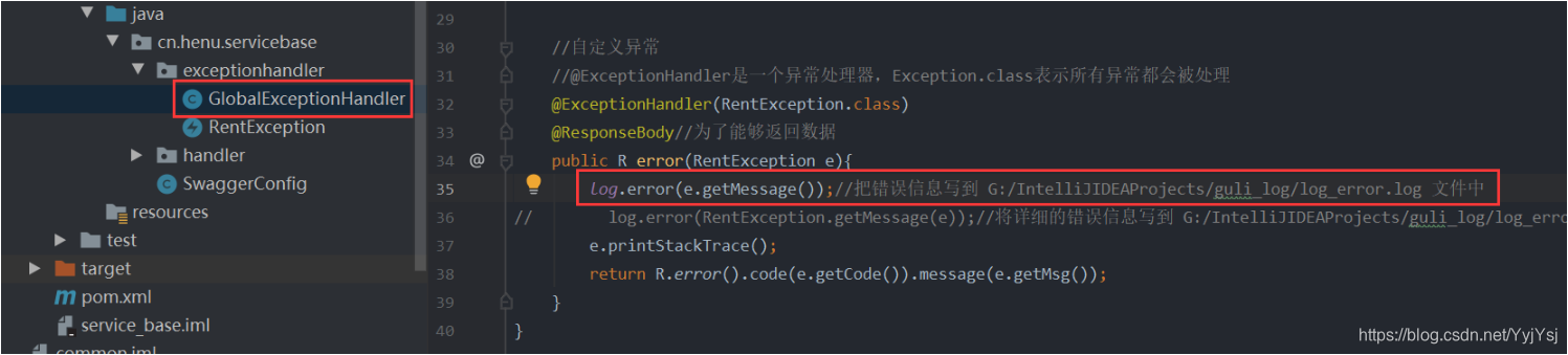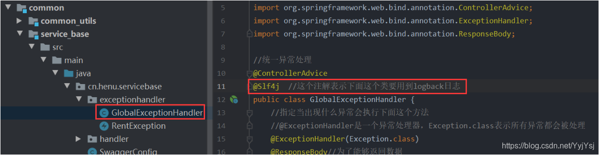 3.1、在全局异常处理类上加一个注解,表示这个类要用到logback日志