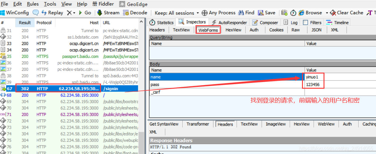 Fiddler抓取的请求信息,并进行登录请求的搜索和定位  ?