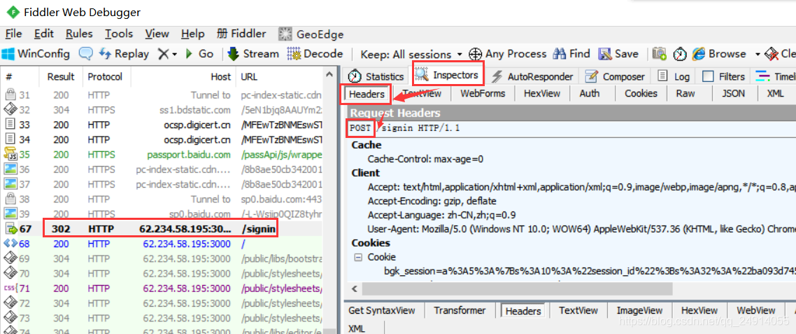 ? 2)请求头参数:双击请求-->Inspectors-->Headers-->查看请求头参数