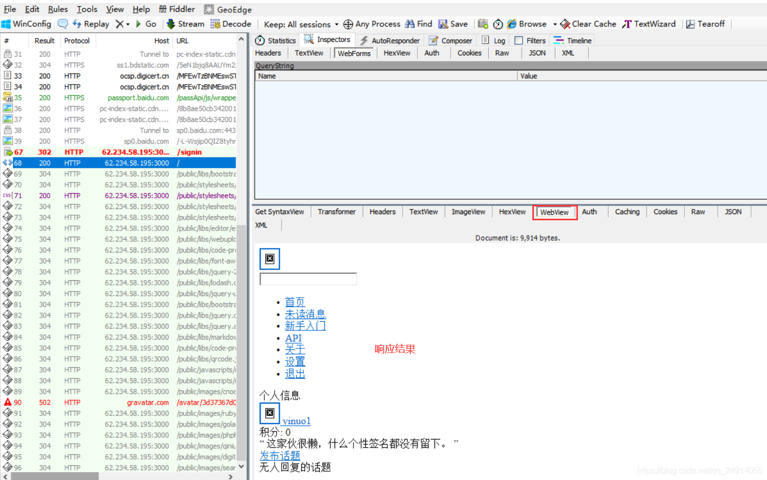 响应结果:双击请求,查看底部的WebView  ?