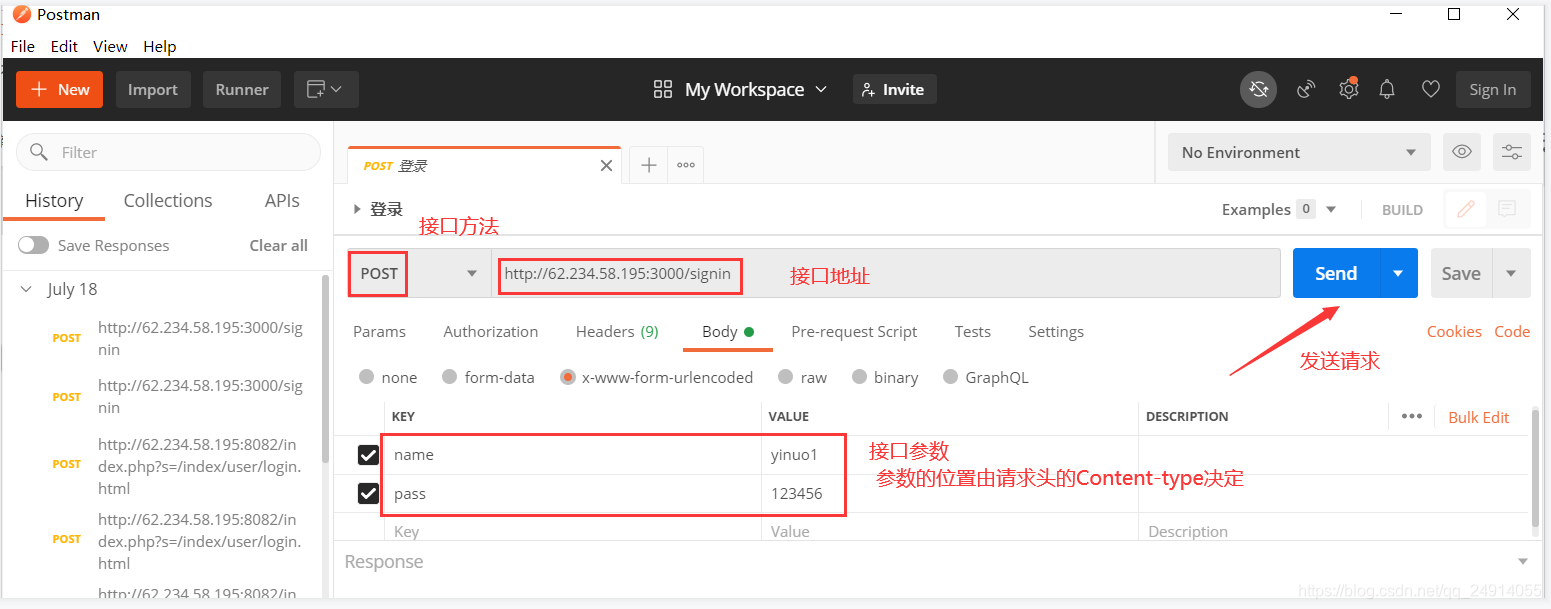 输入请求url、方法、参数;发送请求  ? -