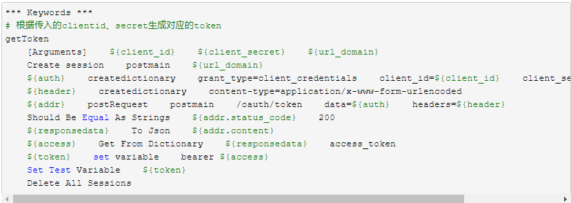 RequestsLibrary 构造http的请求,get|post等请求 6.2 自定义关键字
