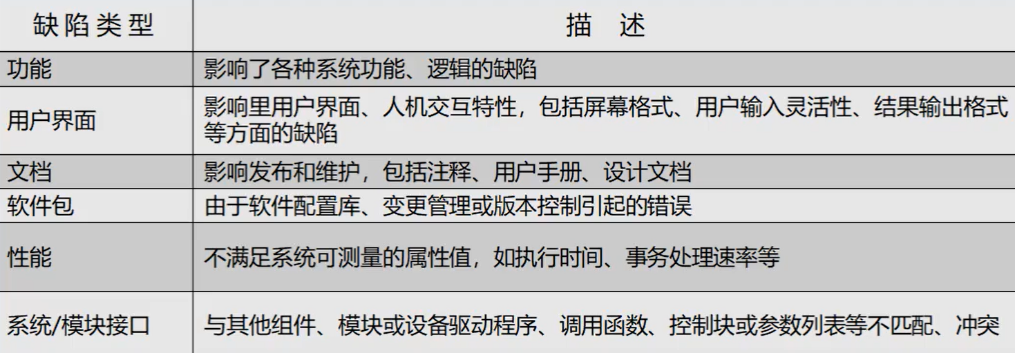 - 缺陷类型:根据缺陷的自然属性划分的缺陷种类