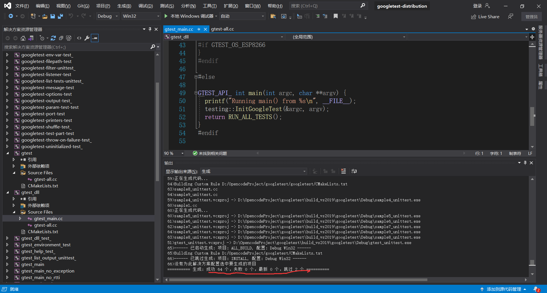 ?GoogleTest 是 Google 的 C++ 测试和模拟框架,可以帮助程序员测试C++程序的结果预期,GoogleTest 的代码用cmake管理,可以使用cmake进行编译程dll在程序中使用。googletest一般也可以简称为gtest, 最新版本GoogleTest 需要符合 C++11 标准或更新标准的代码库和编译器。