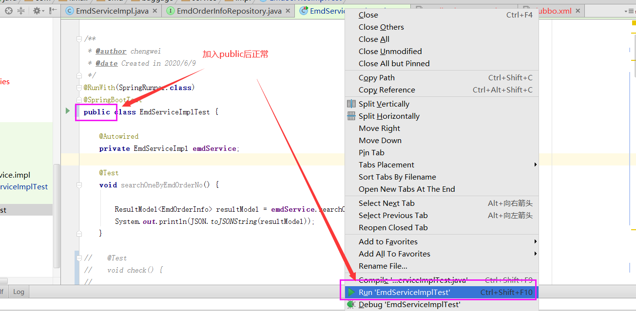 原因:经过排查发现是该测试类缺少关键字public;